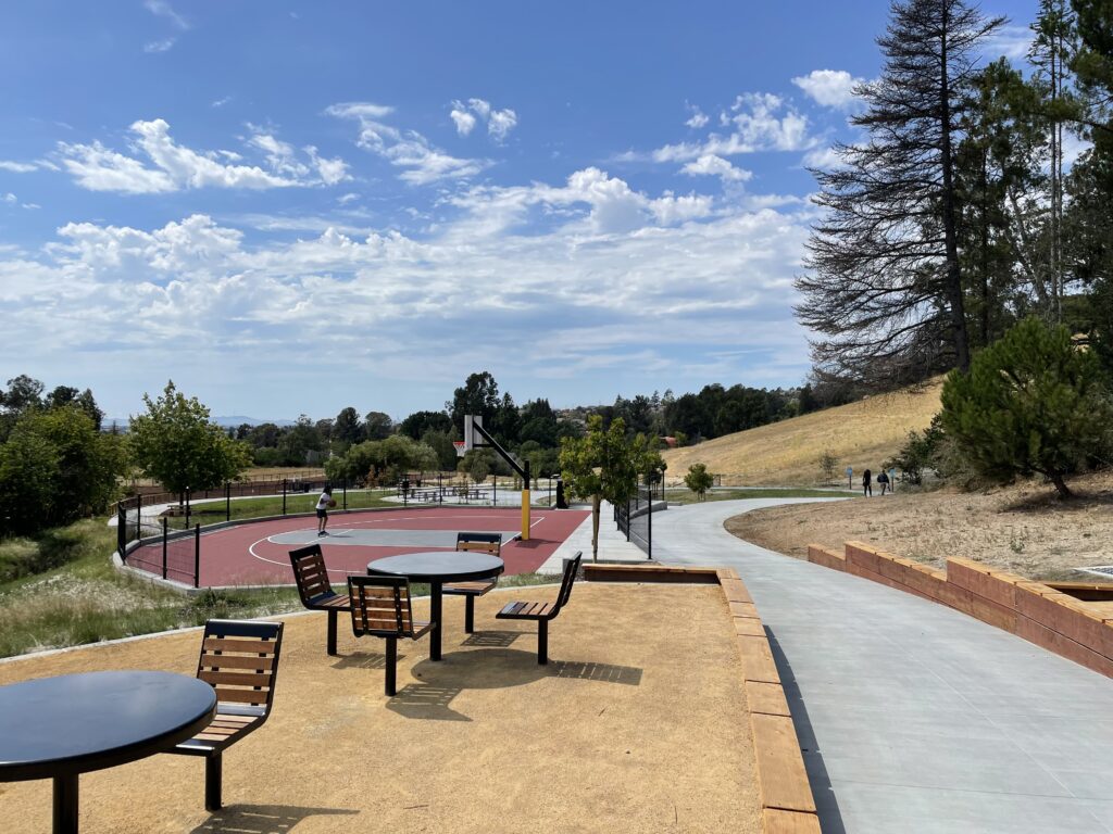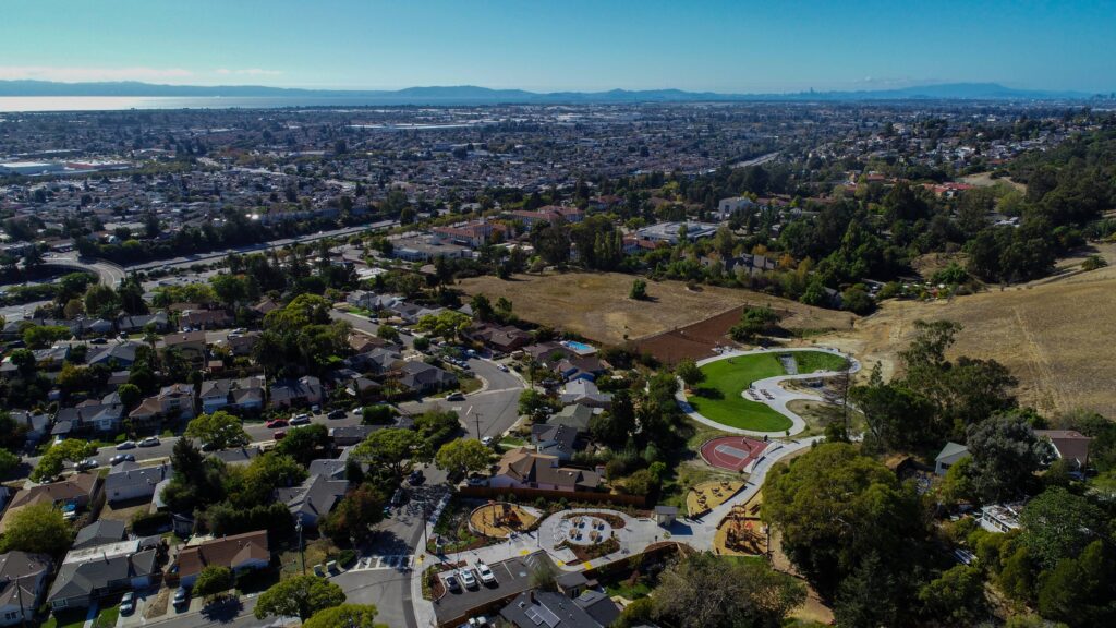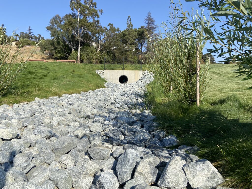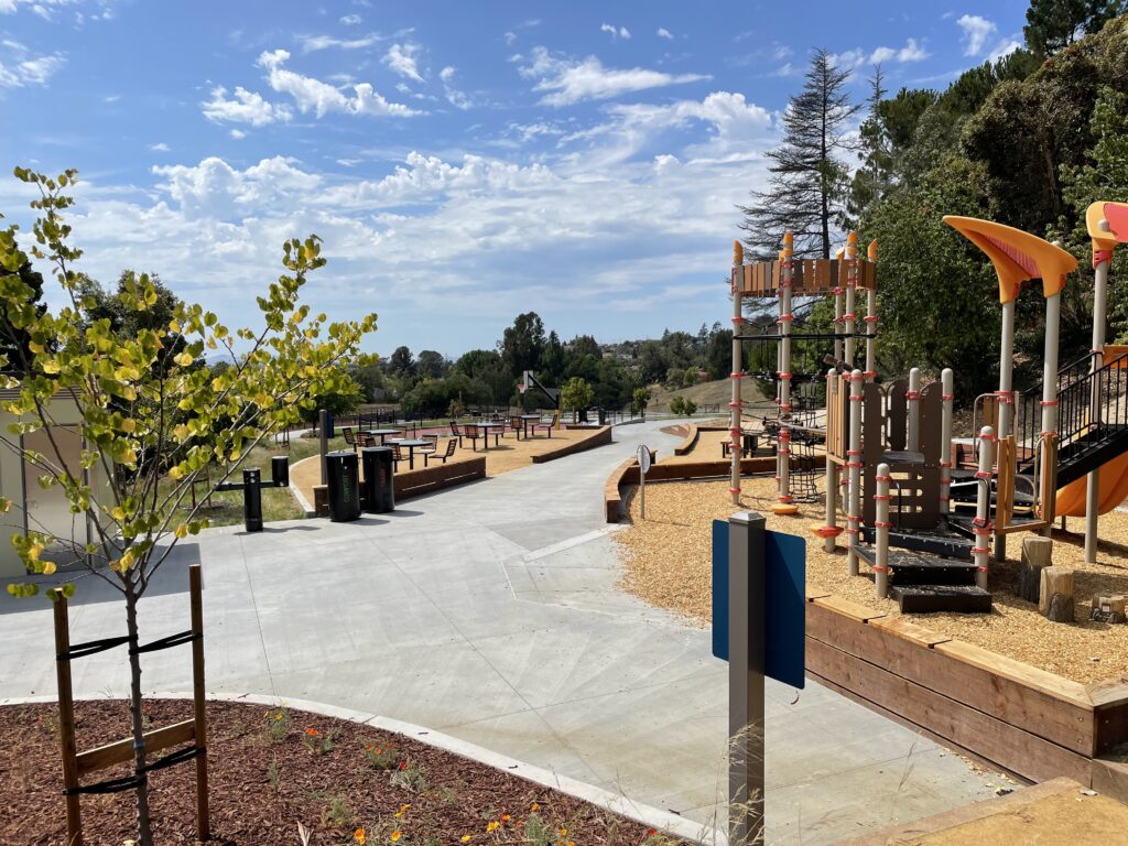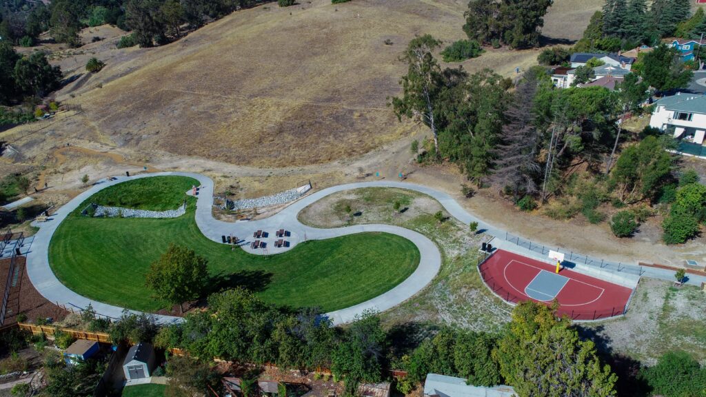 1.7-acre Fairmont Terrace Park was built in the 1950’s as part of a planned development. A natural ephemeral creek traverses the lower half of Fairmont Terrace Park. It is a unique feature that conveys water from the subdivision up the hill, through the park and into the County stormwater system. The design enhances and showcases the stream by expanding it into a manmade element through the park, exposing the bioretention function, and bridging the loop trail over the swale in multiple locations.