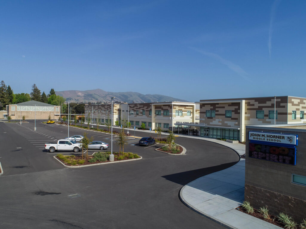 A complete redevelopment and expansion of an existing junior high school campus into a new middle school to serve 1950 students. The project includes construction of two 2-story classroom structures and one 1-story classroom structure. Scope includes complete construction of administration, multipurpose, classroom and locker building, associated site work, landscape, hardscape, new track and field, new hardcourts, new baseball field, associated underground utility work and connections, existing facilities tie-in to new campus and associated demolition.