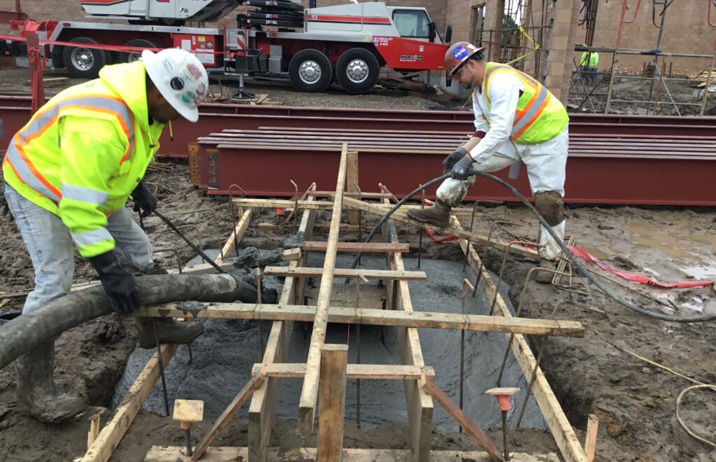 The new 400+ seat Performing Arts Center is part of an overall campus-wide modernization and new construction program, including a new tech lab/woodshop building. New construction of approximately 40,000 SF school building, including CIP spread footings, CIP grade beams, CIP slab on grade, CIP walls, CIP slab on metal deck, CIP suspended slabs, CIP site retaining walls, CIP wall footings, curbs, and gutters, concrete paving and structural repairs to existing concrete stairs, walls, and slabs.